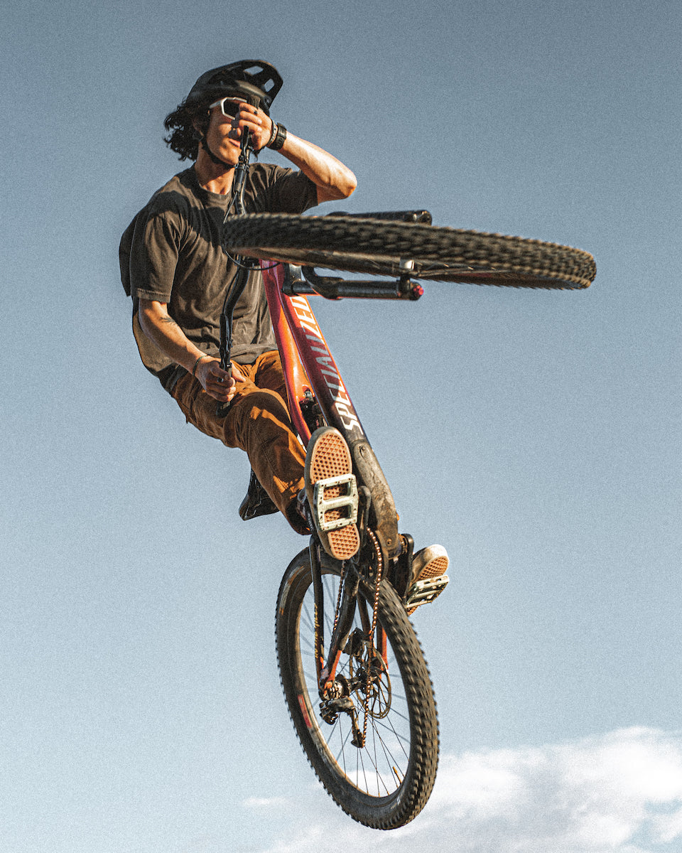 We met Tomás in 2022 riding bikes at our favorite trails here in Salt Lake and Park City. He’s the type of person you’re immediately drawn to with an outgoing, kind, and genuine personality … traits we deeply value. You’ll often find Tomás riding dirt jumps at I-Street and building trails in Park City during the heat of summer. He’s an easy guy to spot, usually the first one there and last one to leave. Oh, and don’t worry about introducing yourself, odds are Tomás we’ll beat you to it! What he doesn’t make up for in kindness he makes up for with his effortless style on the bike – usually met with a lot of “woahs” and “yooo!’s” from onlookers.
